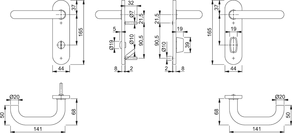 Edelstahl-WC Drückergarnitur als Kurzschildgarnitur