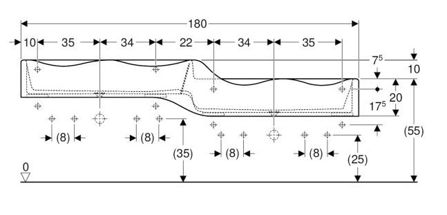 - Geberit Bambini Dekorblende Front, für Spiel- und Waschlandschaft, für drei Waschtischarmaturen, tieferes Becken rechts