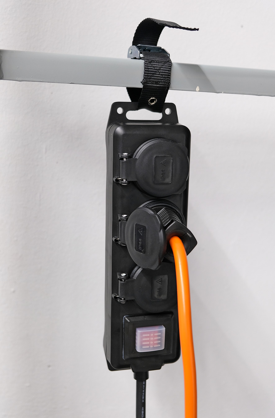 - Zur Fixierung der IP44 Steckdosenleiste mit Aufhängevorrichtung - mit dem Befestigungsgurt können Sie Ihre IP44 Steckdosenleiste hängend befestigen