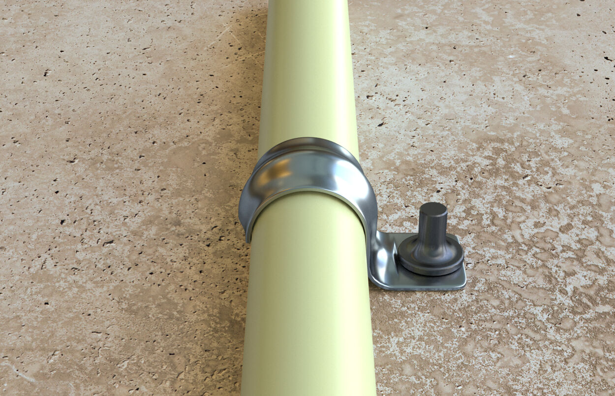 - Die Befestigungsschelle erlaubt eine direkte Befestigung mit Einschlagnägeln und ist somit einfach und schnell montierbar.
