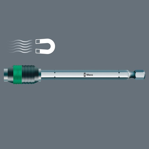 Rapidaptor Universalhalter für Bits mit 1/4″-Außensechskantantrieb nach DIN ISO 1173-C 6,3 und E 6,3 (ISO 1173). Der Rapidaptor erlaubt eine Aufnahme der Bits auch ohne Betätigung der Hülse. Die Entnahme des Bits geschieht durch einfaches Nach-vorn-Schieben - für blitzschnellen Bitwechsel · auch mit nur einer Hand. Der starke Dauermagnet hält die Bits bombenfest. 1/4″-Sechskant · passend für Schraubermaschinen mit Aufnahme nach DIN ISO 1173-F 6,3. Vorteile: Rapidaptor-Technologie für blitzschnellen Bitwechsel. Rapidaptor Universalhalter für Bits mit 1/4″ Außensechskantantrieb · magnetisch. Mit 1/4″ Außensechskantantrieb. Rapidaptor Universalhalter für Bits mit 1/4″-Außensechskantantrieb nach DIN ISO 1173-C 6,3 und E 6,3 (ISO 1173). Der Rapidaptor erlaubt eine Aufnahme der Bits auch ohne Betätigung der Hülse. Die Entnahme des Bits geschieht durch einfaches Nach-vorn-Schieben - für blitzschnellen Bitwechsel · auch mit nur einer Hand. Der starke Dauermagnet hält die Bits bombenfest. 1/4″-Sechskant · passend für Schraubermaschinen mit Aufnahme nach DIN ISO 1173-F 6,3.