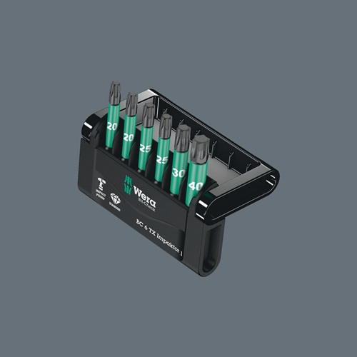 6 Wera Impaktor-Bits übersichtlich angeordnet auf engstem Raum im praktischen Bit-Check. Die Impaktor-Technologie sorgt durch bestmögliche Ausnutzung der Materialeigenschaften und durch optimal angepasste Geometrien für überdurchschnittliche Standzeiten auch bei extremen Anforderungen. Die Bitspitze ist mit winzigen Diamantpartikeln beschichtet und reduziert durch erhöhten Reibungswiderstand das Herausrutschen aus der Schraube. Vorteile: Aufstellbarer · mehrkomponentiger Bit-Check. Impaktor-Technologie für überdurchschnittliche Standzeiten. Besonders geeignet für den Einsatz mit handelsüblichen Impakt-/Schlagschraubern. Diamantbeschichtung für sicheren Sitz in der Schraube. Mit Werkzeugfinder Take it easy: Farbkennzeichnung nach Profilen und Größenstempelung. 6 Wera Impaktor-Bits übersichtlich angeordnet auf engstem Raum im praktischen Bit-Check. Die Impaktor-Technologie sorgt durch bestmögliche Ausnutzung der Materialeigenschaften und durch optimal angepasste Geometrien für überdurchschnittliche Standzeiten auch bei extremen Anforderungen. Die Bitspitze ist mit winzigen Diamantpartikeln beschichtet und reduziert durch erhöhten Reibungswiderstand das Herausrutschen aus der Schraube.