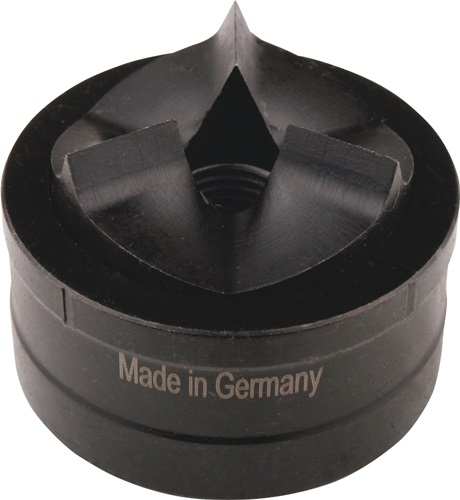 Spalt-Blechlocher · zum schnellen, gratfreien Stanzen von runden Löchern in Stahlbleche S235 · Materialstärke bis 3 mm · für Kabel-Verschraubungen mit PG- und metrische Gewinde und Sanitärarmaturen · durch 3-fach Spaltung kein verklemmen des Abfallstücks in der Matrize · Zugschraube mit UNF-Feingewinde · Bedienung der Zugschraube mittels Schraubenschlüssel · ideal für Schaltanlagenbauer, Elektriker, Installateure, Industrie und Handwerk · mit wenigen Handgriffen dünnwandige Materialien schnell, mühelos, sauber und gratfrei lochen
