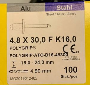 GESIPA PolyGrip Blindniete - Alu/Stahl - Großkopf - 4,8x30 K 16 - Klemmbereich 16-24 mm