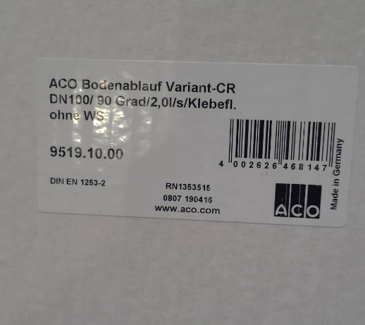 Datenblatt "Bodenablauf Vatiant-CR DN 100 90° 2.0l I TH1664"