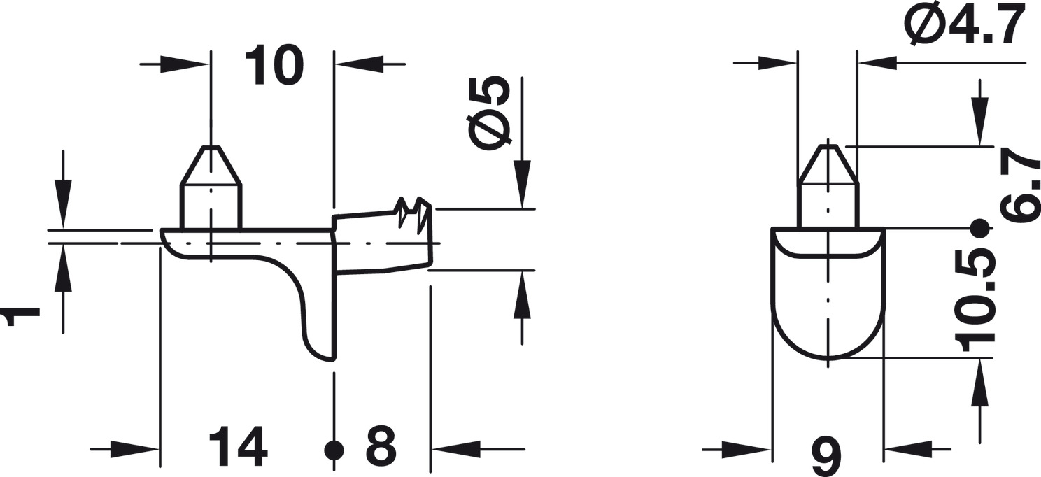 Bodenträger, zum Einstecken in Bohrloch-Ø 5 mm, Zinkdruckguss