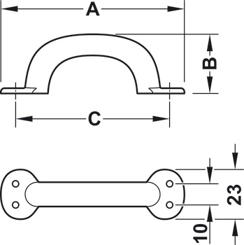 Bogengriff aus StahlFabrikat: häfeleWerkstoff: StahlLänge: Höhe: Lochabstand: Bohrloch-Durchmesser:
