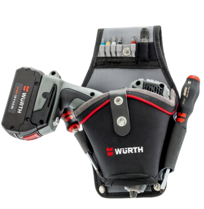 Halter mit elastischen Bändern für die Aufnahme von Bohrer, Bits und Bithalter.
