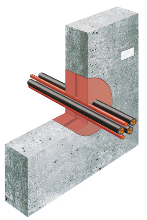 - Brandschutzstopfen werden einfach je nach Kernbohrungsdurchmesser ausgewählt und beidseits der Wand oder Decke eingebaut und die Kabelzwischenräume mit Brandschutzmasse Kombi verschlossen.