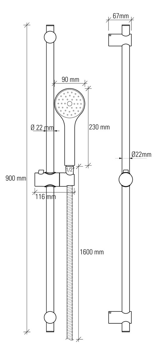 - Gesamtlänge: 900 mm