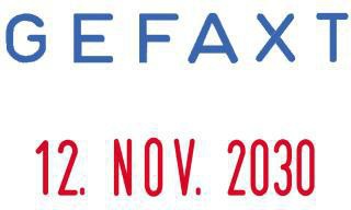 Einfacher Datumstempel mit Text. Kombiniert einen Datumsabdruck im Format Tag/Monat/Jahr mit einem fertigen Stempeltext.