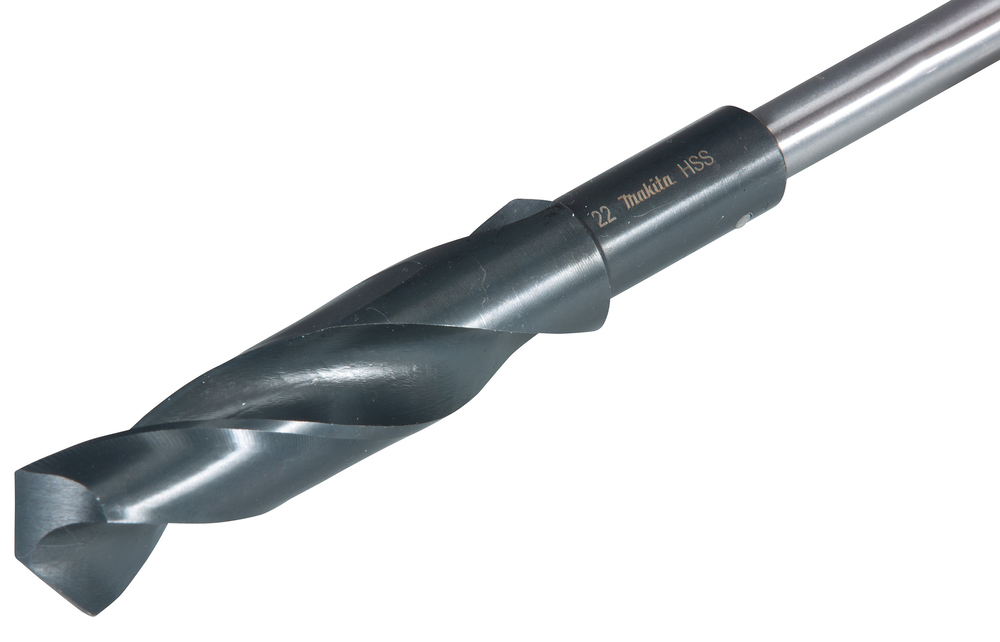 Präzisionsgeschliffener HSS-G Schalungsbohrer Ø 22,0 mm mit einer Gesamtlänge von 400 mm und einer Arbeitslänge von 100 mm. Der Bohrer hat eine Rundschaftaufnahme für Schnellspannbohrfutter. Sicherer Halt zwischen Bohrer und Schaft mittels Splint auch beim Rückwärtsausdrehen.