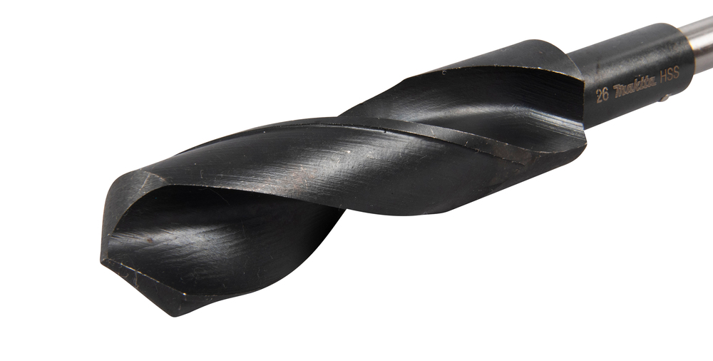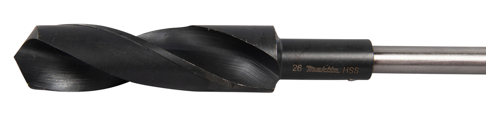 Präzisionsgeschliffener HSS-G Schalungsbohrer Ø 26,0 mm mit einer Gesamtlänge von 600 mm und einer Arbeitslänge von 100 mm. Der Bohrer hat eine Rundschaftaufnahme für Schnellspannbohrfutter. Sicherer Halt zwischen Bohrer und Schaft mittels Splint auch beim Rückwärtsausdrehen.