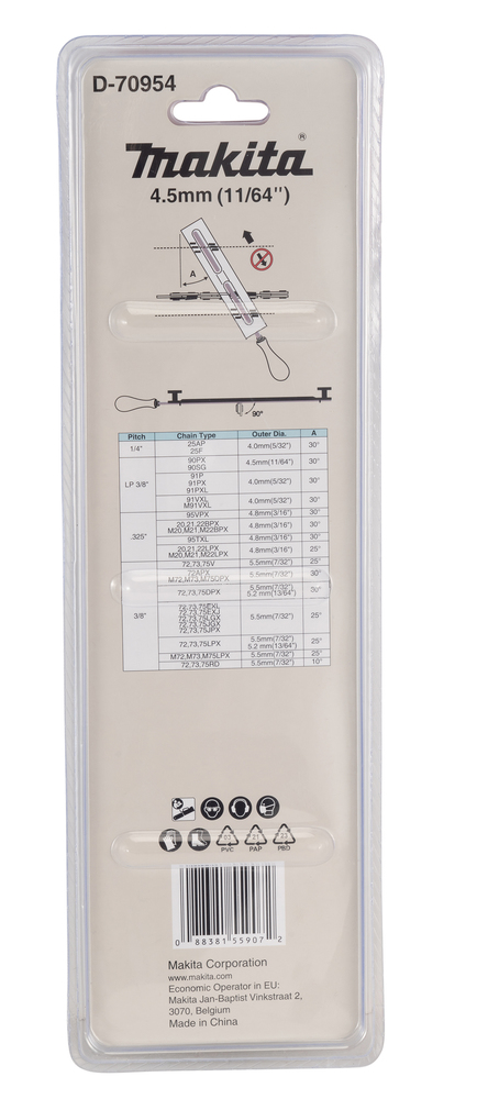 Rundfeile 4,5 mm mit weichem Feilverhalten. Zum Feilen von Sägeketten mit 3/8" Teilung und 1,1 mm oder 1,3 mm Treibgliedstärke. Feilwinkel 30°. Beispielsweise 90SG