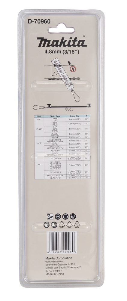 Rundfeile 4,8 mm mit weichem Feilverhalten. Zum Feilen von Sägeketten mit .325" Teilung. Feilwinkel 25°. Beispielsweise 20-21-22BP/LP/LPX, 95VPX, 95R