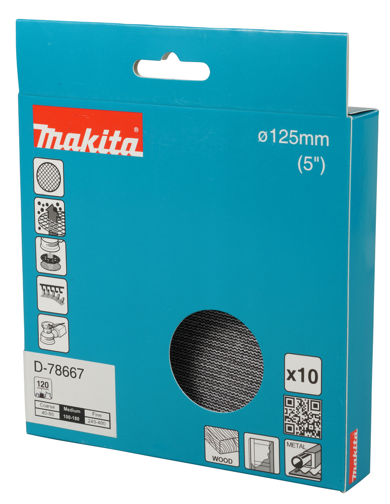 Netzschleifmittel mit einer mittleren 120er Körnung aus weißem Aluminiumoxid. Das weiße Aluminiumoxid verfügt über ein feineres und offener gestreutes Kornbild und ist somit neben Holz- und Metalloberflächen auch ausgezeichnet für Farben und Lacke geeignet. Eine langanhaltende Schleifleistung wird durch die Gitterstruktur gewährleistet. Der Schleifstaub wird von zu behandelnden Werkstücken deutlich besser abgetragen, wodurch das Schleifkorn nicht negativ beeinträchtigt wird. Die vorhandene Klett-Aufnahme ermöglicht eine schnelle und unkomplizierte Befestigung an der Maschine. Um einen optimalen Halt und die Langlebigkeit des Schleifmittels garantieren zu können, muss der optional erhältliche Schleiftellerschutz D-78704 zwischen Schleifmittel und Schleifteller angebracht werden.