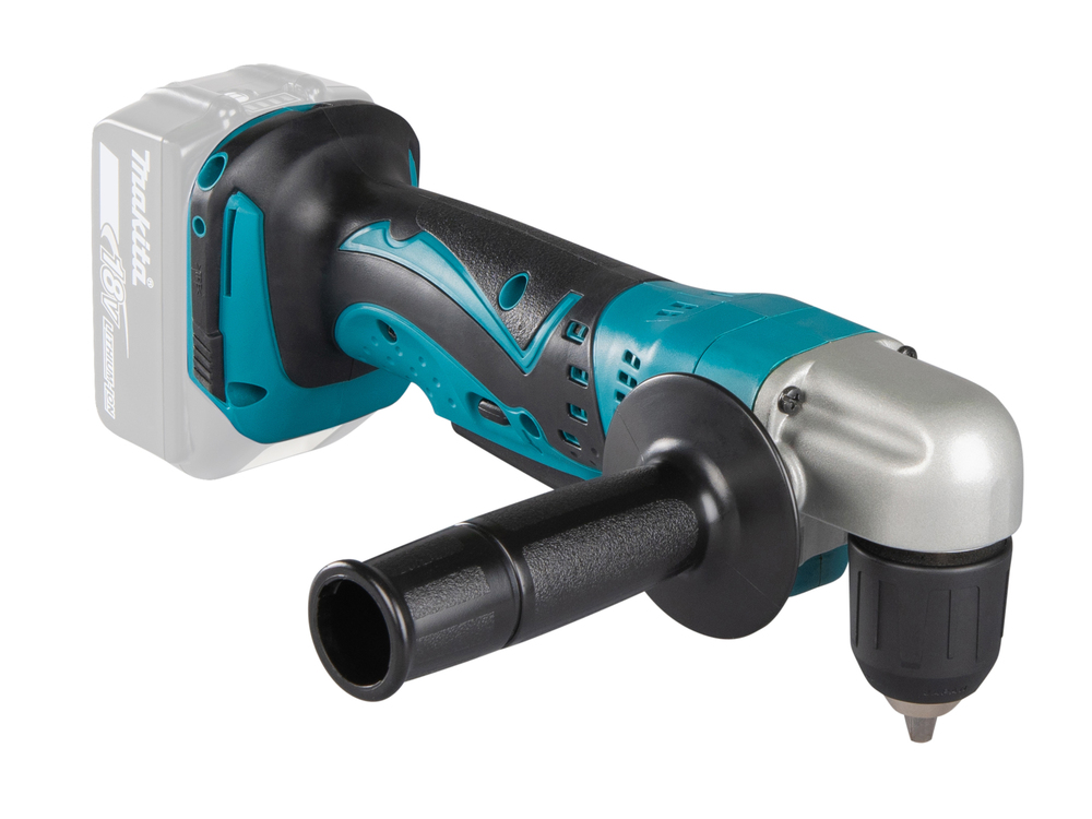Handliche Akku-Winkelbohrmaschine mit 18 V, die mit einer Motorbremse und einer leuchtstarken LED ausgestattet ist. Der 4-polige Motor in kompakter Bauform bedingt eine Anwendung ohne Drehmomentverlust bei geringer Stromaufnahme. Der große Paddelschalter sorgt für eine einfache Handhabung.