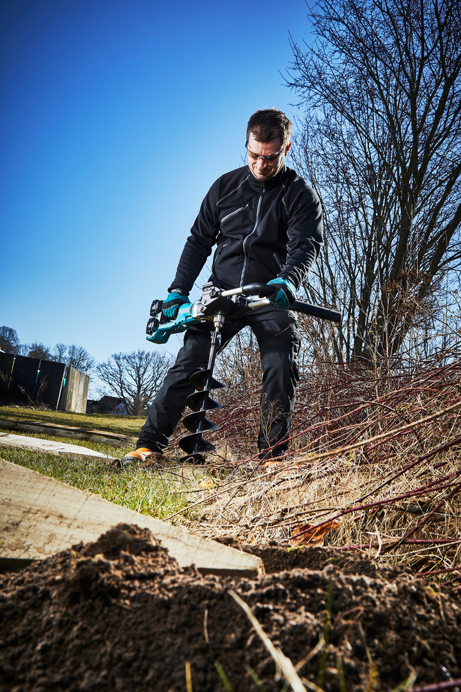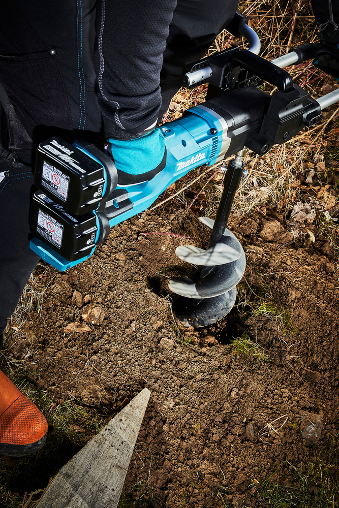 Zum einfachen und schnellen Bohren von Löchern für beispielsweise Zaunpfähle etc. Der bürstenlose 2 x 18 V Motor erzielt ein Drehmoment bis zu 136 Nm. Es stehen zwei Drehzahlbereiche zur Verfügung. 0-1.400 min⁻¹ für schnelle Bohrungen in sandigem Boden oder 0-350 min⁻¹ für schweren Lehmboden. Mit Rückwärtslauf bei blockierendem Bohrer.