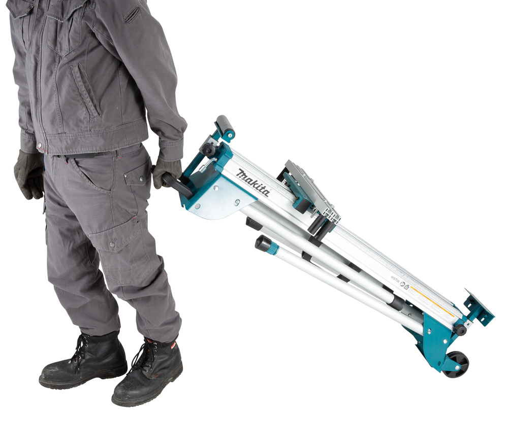 Das Untergestell verfügt über einen verbesserten Schnellwechsel-Befestigungsmechanismus und kann auf eine Länge von max. 2,55 m ausgefahren werden. Zusammengeklappt lässt sich das ca. 15,3 kg leichte Untergestellt einfach tragen oder rollen. Ein höhenverstellbarer Fuß gleicht unebene Untergründe aus. Auflageverlängerung mit Roller auf einer Seite.