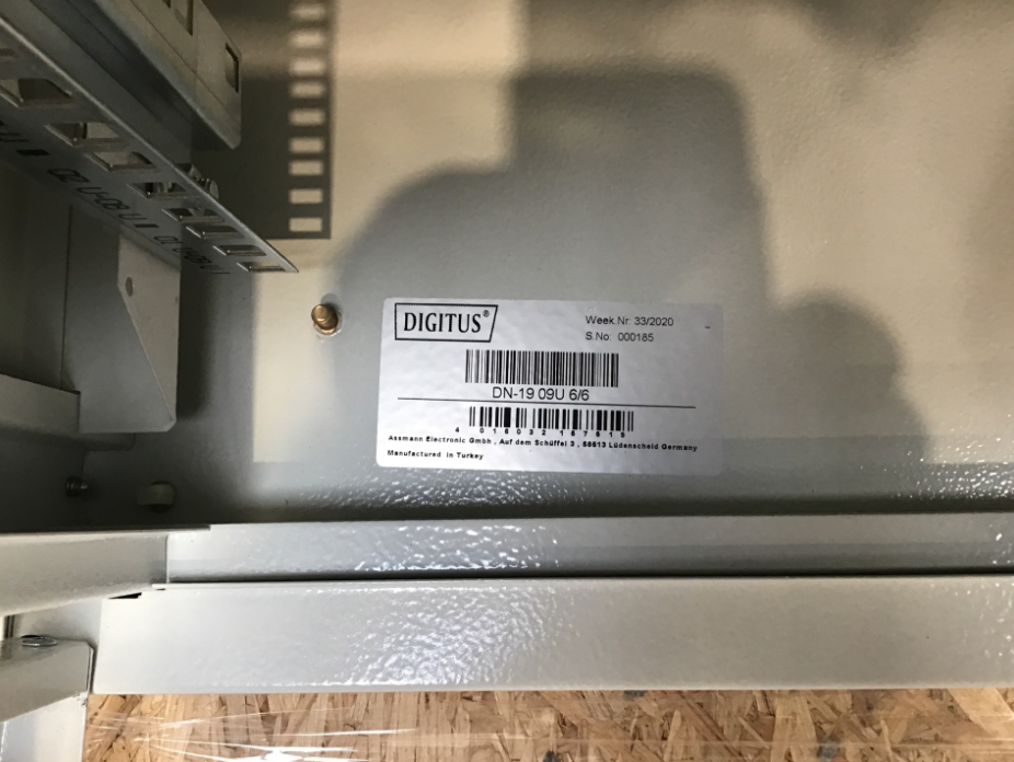 - 483 mm (19“)-Profilschienen an der Vorder- und Rückseite innerhalb des Schrankes montiert, galvanisiert