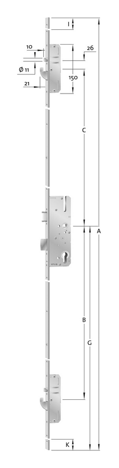 Produktinformationen "DIN R Mehrfachverriegelung mit 16 mm Flach-stulp 45 mm 92 mm | LÖ0027"