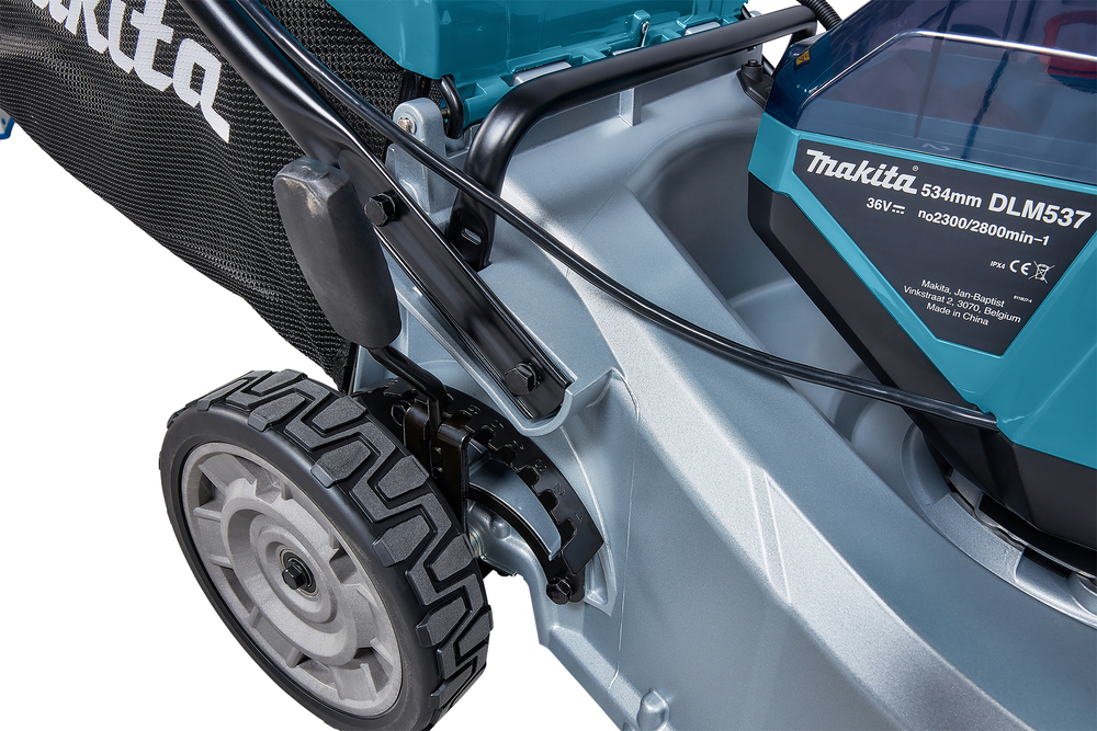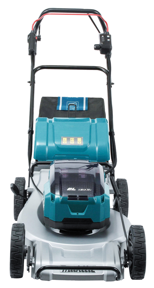 Geräuscharmer 2 x 18 V Akku-Rasenmäher mit robustem rostfreiem Aluminiumdeck für große Rasenflächen. Mit vier Akku-Steckplätzen zur Verdoppelung der Reichweite. Der Radantrieb ist autark und ohne Mähwerk nutzbar. Leise-Modus für ein geräuschempfindliches Umfeld. Füllstandsanzeige am 70 Liter Grasfangkorb. Mit Akku-Ladestandanzeige direkt am Führungsholm. 4 in 1: Mähen, Sammeln, Mulchen, Heckauswurf.