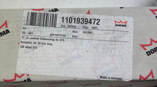 Produktinformationen "DORMA-GLAS PT10, unterer Eckbeschlag für BTS, komplett, Silber ALU EV1 I LL4115"