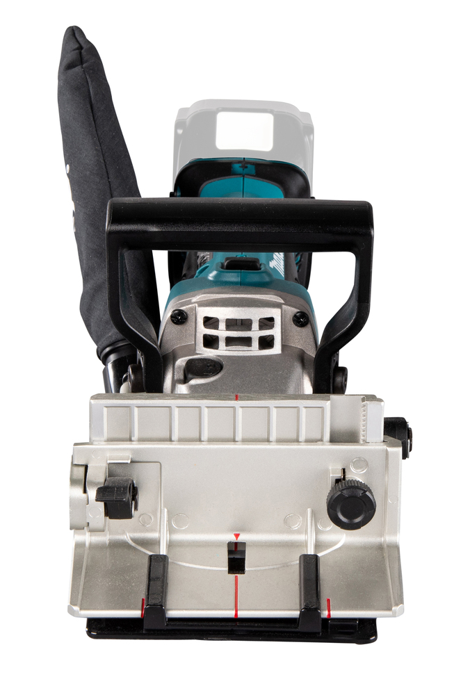 Eine Akku-Nutfräse mit einem 100 mm Fräser und einer Schnittleistung von 20 mm für Zimmerarbeiten. Das Gerät ist geeignet für Nutverbindungen in Platten und anderen Holzstrukturen. 6 verschiedene Einstellungen mit Tiefen-Feineinstellschraube.