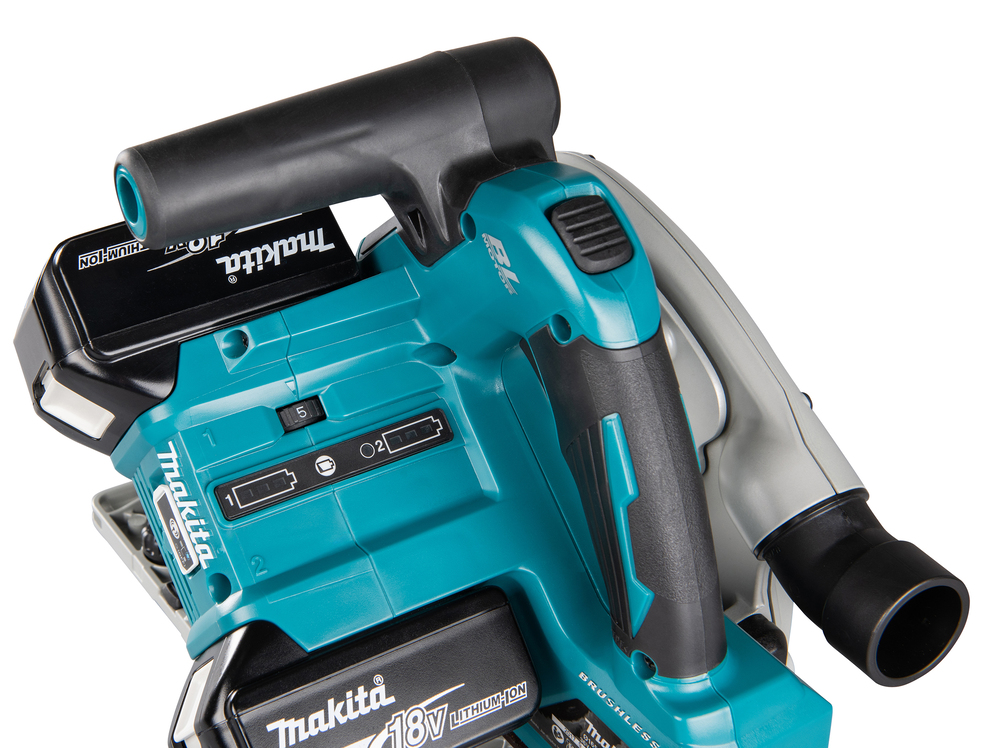 Eine präzise Tauchkreissäge mit bürstenlosem Motor. Die Säge erreicht mit einem Sägeblattdurchmesser von 165 mm eine Schnitttiefe von 56 mm. Der Schnittpunkt bleibt in allen Neigungen (-1° bis +48°) an exakt der gleichen Stelle. Die Säge kippt auch bei größtem Neigungswinkel nicht von der Führungsschiene. Inkl. AWS-Funk-Adapter WUT01.