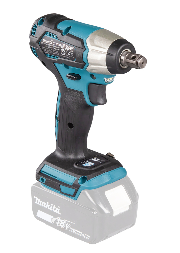 Akku-Schlagschrauber mit 210 Nm. Einer der kleinsten und handlichsten Akku-Schlagschrauber mit 1/2“-Außenvierkantaufnahme. Inklusive Akku wiegt die Maschine gerade mal 1,5 kg. Die Gehäuselänge beträgt lediglich 151 mm. Trotzdem entwickelt der bürstenlose Motor ein Drehmoment von 210 Nm. Besonders zu erwähnen ist noch die Auto-Stopp-Funktion. Diese bewirkt den sofortigen Stopp (0,2 Sekunden) der Drehbewegung nach vollständigem Lösen von Schrauben und Muttern. Das verkürzt die Arbeitszeit und somit die auf den Anwender einwirkenden Vibrationen und Geräusche.