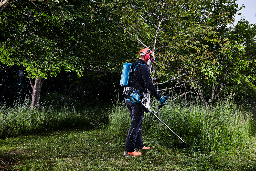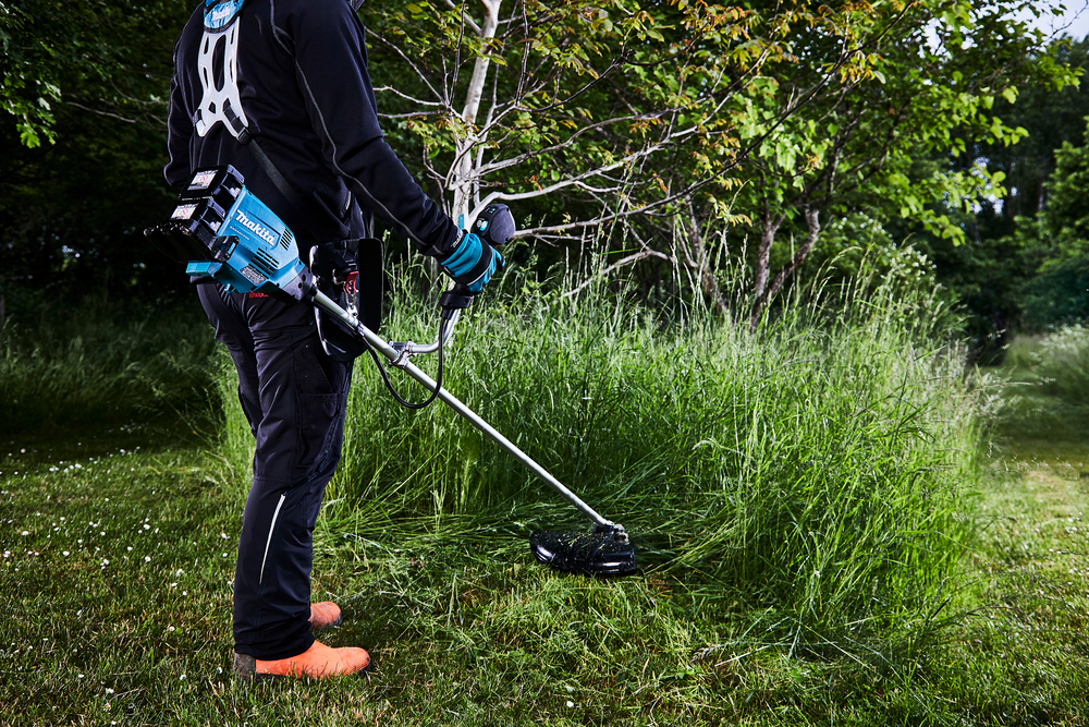 Akku-Freischneider mit 3-stufiger Drehzahleinstellung. Schnittkreis mit Fadenkopf 43 cm.