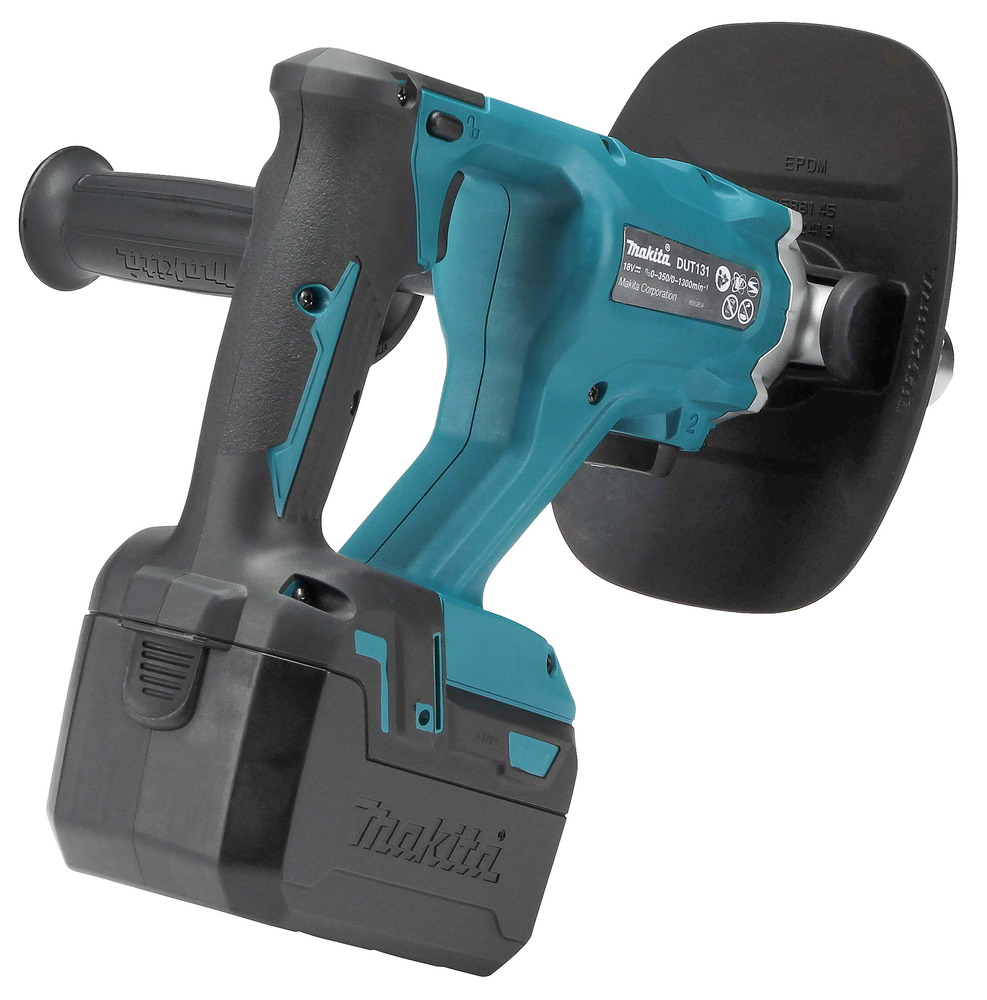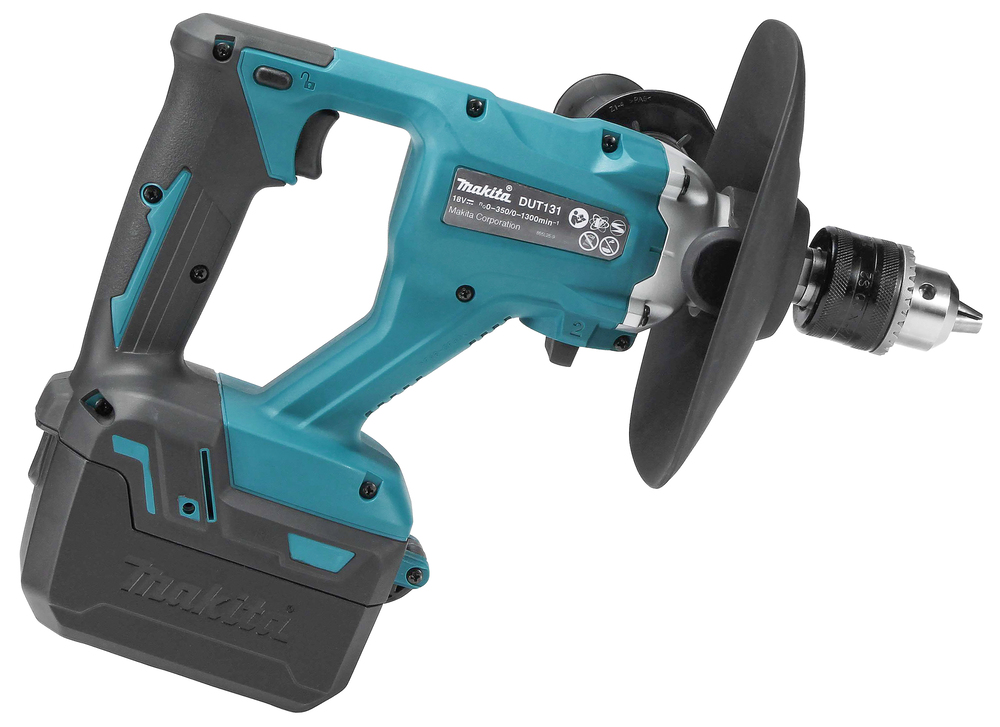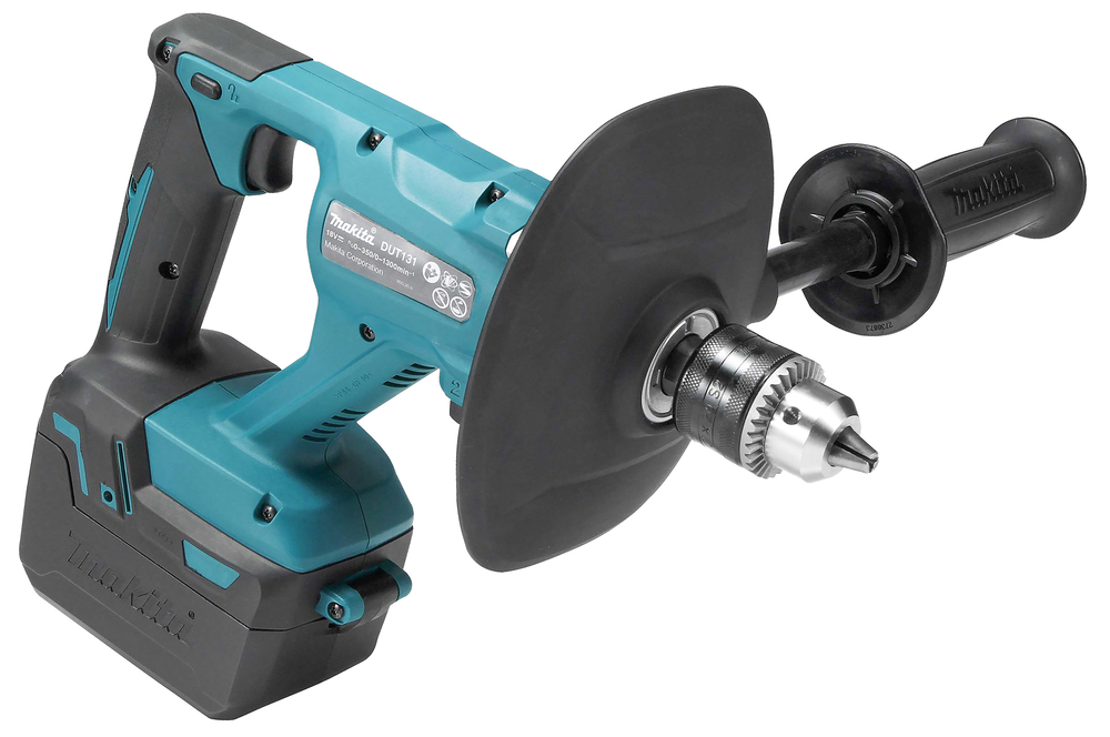 Das Makita Akku-Rührgerät DUT131Z wird von einem 18 V Li-Ion Akku angetrieben und bietet maximale Flexibilität durch kabelloses Arbeiten. Der installierte Spritzschutz schützt effektiv sowohl den Anwender, als auch die Maschine. Ein zusätzliches Akku-Schutzgehäuse schützt den Akku vor Schmutz und Spritzwasser.