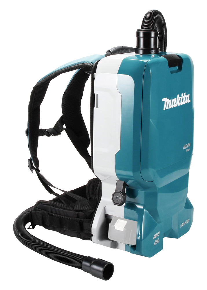 Akku-Rucksackstaubsauger mit bürstenlosem 2x 18V-Antrieb. Gerät wird mit gepolsterten Schultergurten bequem auf dem Rücken getragen. Mit dem Auto-Start Wireless System (AWS) lässt sich der Staubsauger drahtlos mit einer Maschine verbinden, der Sauger startet/stoppt automatisch.