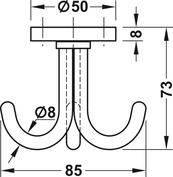 Deckenhaken, aus Edelstahl, mit 3 Haken, Deckenmontage