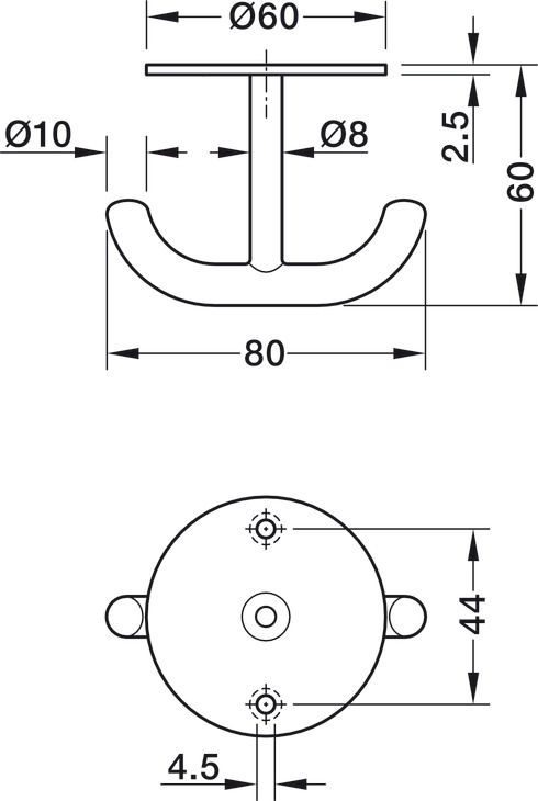 Deckenhaken, aus Edelstahl, mit 2 Haken, Deckenmontage