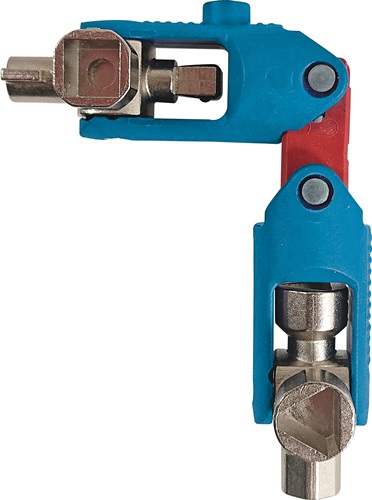für alle gängigen Schließungen, Schaltschränke, Haupt- und Unterverteilungen, Abfallbehälter, Heizungsentlüftungen usw. · Schwenkarme um 360° drehbar · durch ein neu eingesetztes Gelenk, kann der Universalschlüssel sowohl als T-Griff mit hohem Drehmoment oder in der kompakten, zusammengesteckten Variante eingesetzt werden