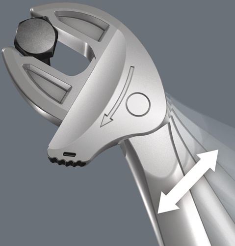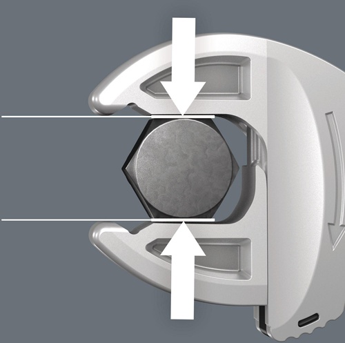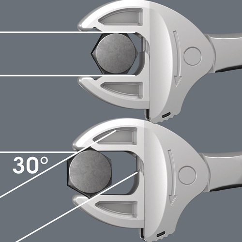 selbstjustierende Doppelmaulschlüssel für Sechskant-Schraubenköpfe bzw. -Muttern · durch die stufenlos und parallel geführten Backen werden mehrere Maulschlüssel-Einzelabmessungen ersetzt · die benötigte Größe stellt sich beim Ansetzen an der Sechskant-Mutter oder -Schraube stufenlos von selbst ein · integrierte Hebelmechanismus · Ratschenfunktion · Rückschwenkwinkel 30°