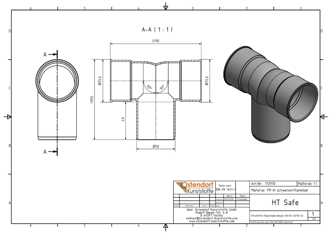 Produktinformationen "Doppelsiphonwinkel DN 40-50-40 90°"