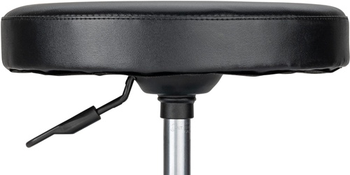 besonders stabile Konstruktion · 5 geräuscharme, mehrfach gelagerte Leichtlaufrollen (Ø 75 mm) · großes, extra dickes Sitzkissen Ø 350 mm · leicht zu reinigen · bis 150 kg dynamisch belastbar · pneumatisch höhenverstellbar · Werkzeugablage mit praktisch unterteilten Fächern · kippsicher