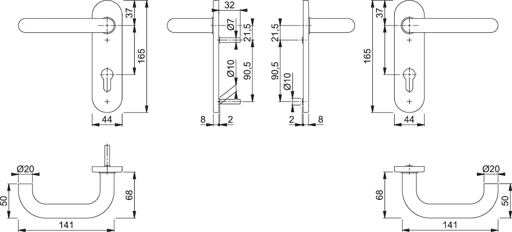 Edelstahl-Innentür-Kurzschildgarnitur
