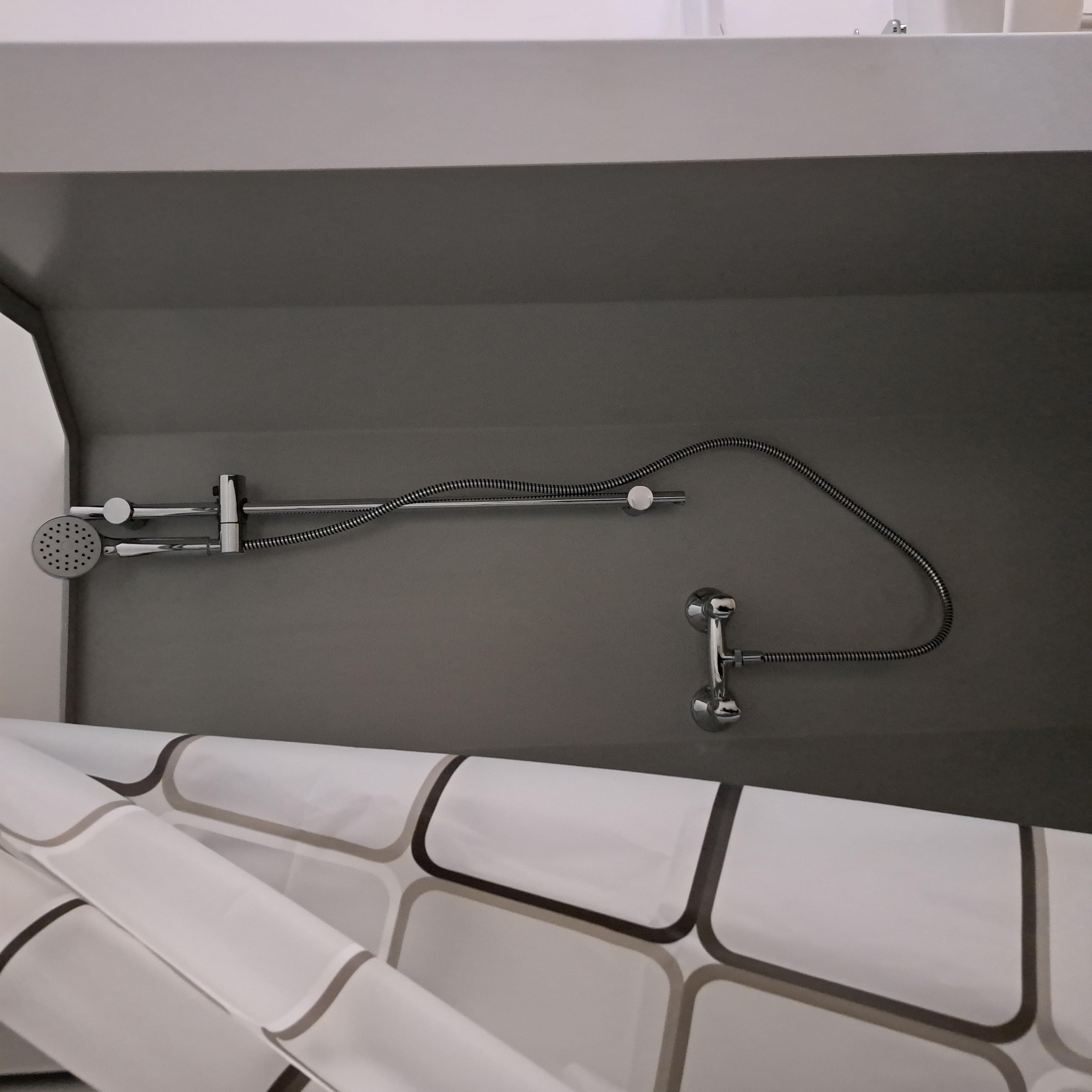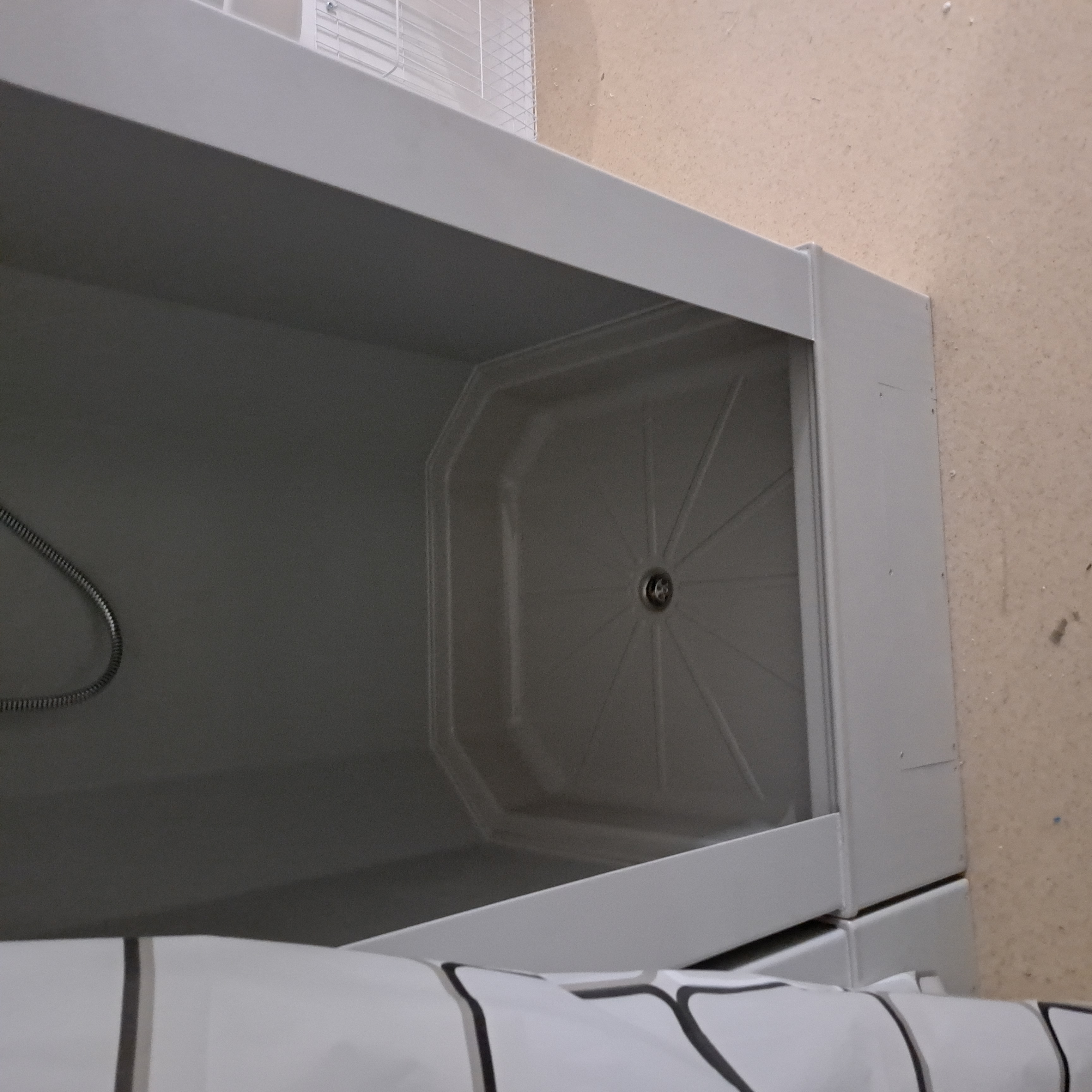 Duschkabine -Komplett-, manhattan ABS/PMMA & PS MAGS: 4,0 mm bestehend aus: Wand 1900 mm hoch, Duschvorhang, Vorhangstange mit 7 Ringen, Abdeckrahmen und 2 Klemmleisten (Kantenschutz), Unterbau mit Duschwanne komplett