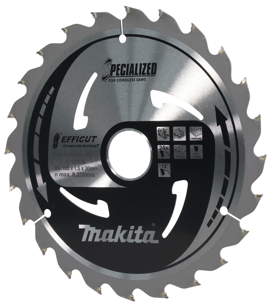 Ø 185 mm • 24 Zähne • 1,5 mm Schnittbreite • 15° Zahnwinkel • WPC • BPC