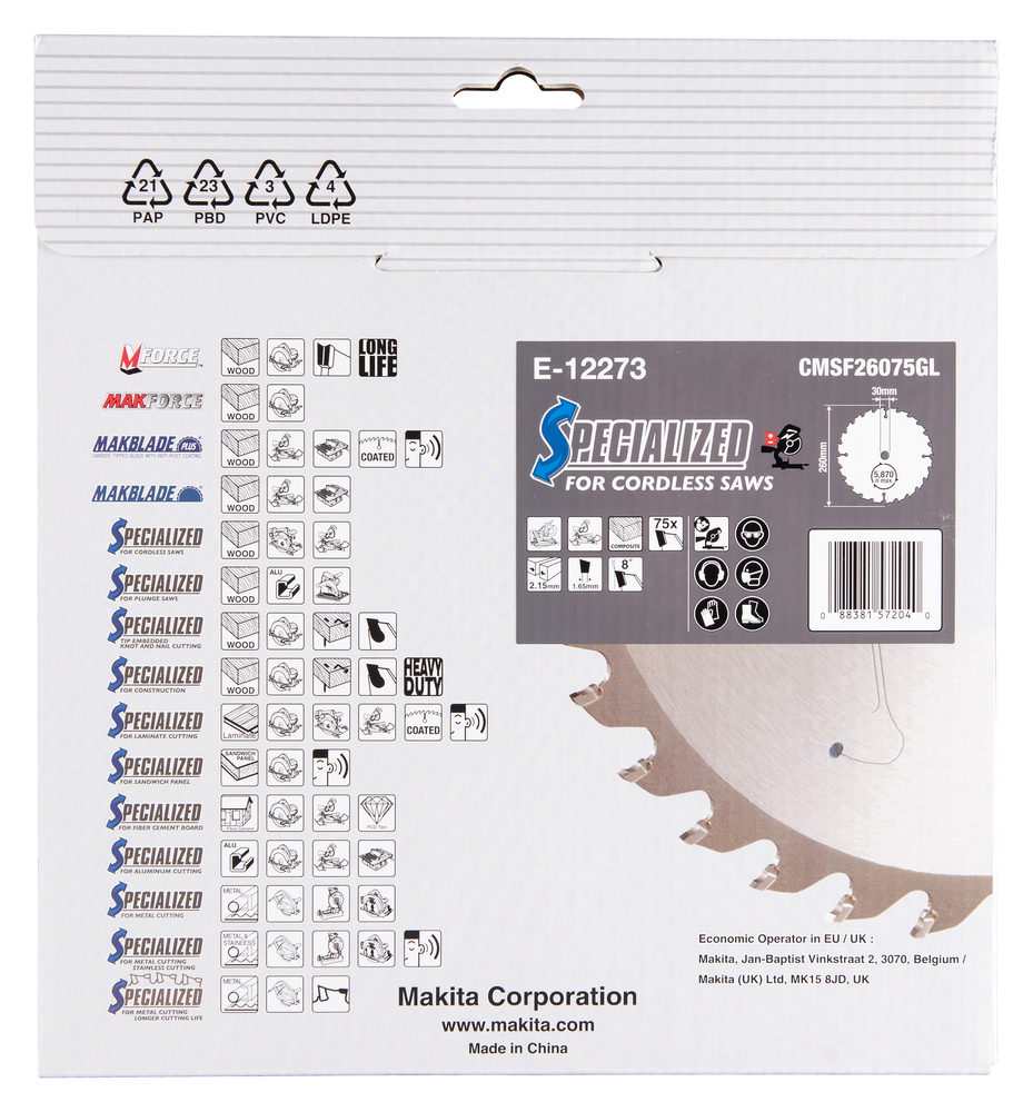 Ø 260 mm • 75 Zähne • 2,15 mm Schnittbreite • 8° Zahnwinkel • BPC • WPC