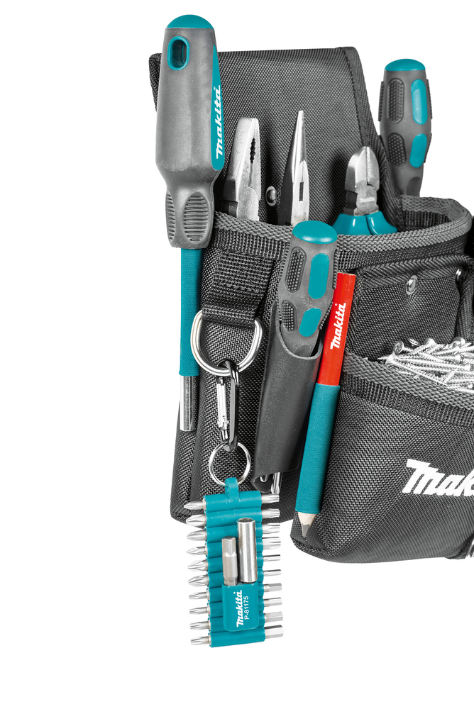 Zwei große Fächer für Werkzeug und Equipment, drei Werkzeughalter aus Leder, vier elastische Bänder für bspw. Zangen und zwei D-Ringe zur Befestigung von Schlüsselringen und Karabinerhaken. Passend auf das Strap-Belt-System.