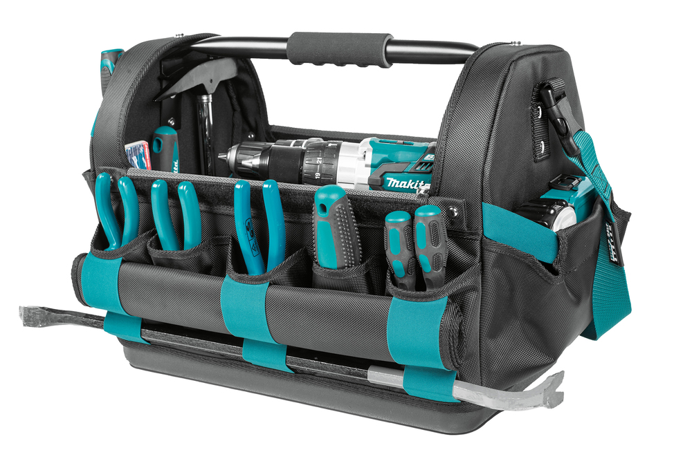 Werkzeugtasche mit abnehmbarer Haube und übersichtlicher Einteilung sowie großzügigem Platzangebot