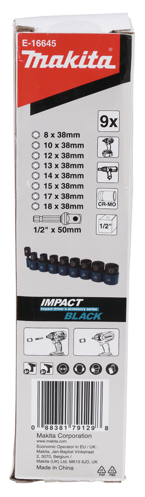 Produktinformationen "E-16645 IMPACT BLACK Schlagnuss-Set 9-tlg. 1/2""