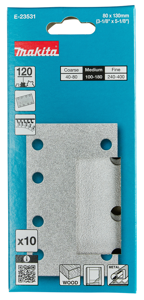80x130 mm • Körnung A120 • Klett • 8 Loch • 10 Stück