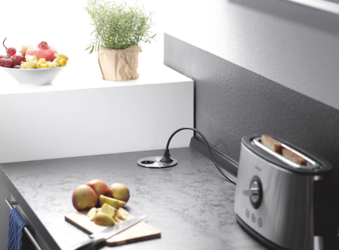 - Lieferumfang: 1 x Einbausteckdosenleiste mit 2 Schutzkontaktsteckdosen, Anschlusskabel 2 m und lose beiliegendem Stecker