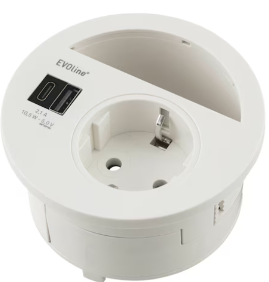 • Einbausteckdose zum Einbau in Tischplatten ab einer Stärke von 10 mm