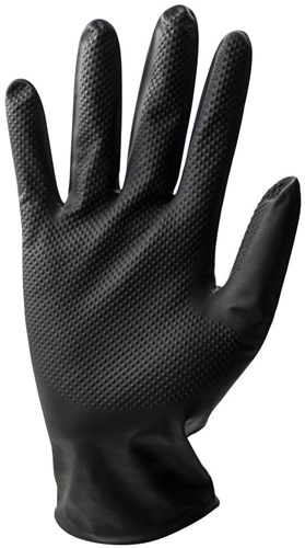 nach EN 374 · Kat. III · AQL: 1,5 · Material: Nitril · puderfrei · Premium-Qualität · lebensmittelgeeignet · hervorragender Griff und Halt (trocken und nass) durch Diamantmuster · hohe Widerstandsfähigkeit · beidseitig tragbar · latexfrei · puderfrei